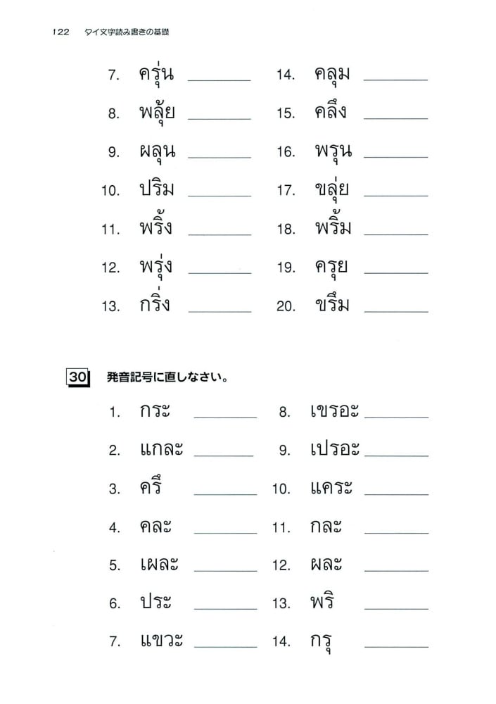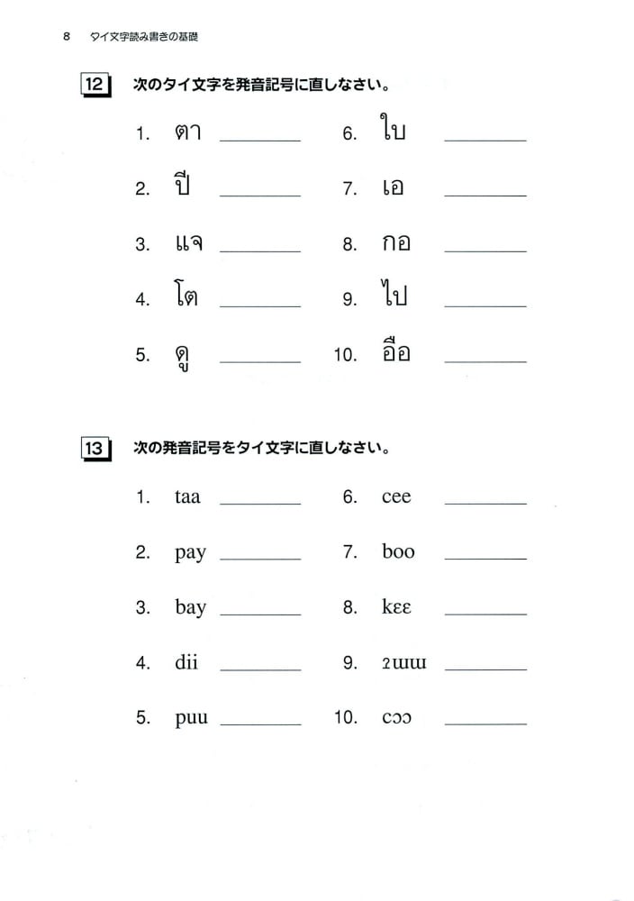 ・初級タイ語のドリル。発音記号でじっくりタイ文字の読み書き学習です。